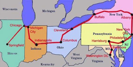 Abraham Lincoln never visited Cleveland as president. As president-elect, he did stop briefly en route from Springfield Illinois to Washington DC for his inauguration. His funeral train followed a similar route, but westward. On board were a few relatives, a military honor guard, many dignitaries, and representatives of every state in the Union. Stops with