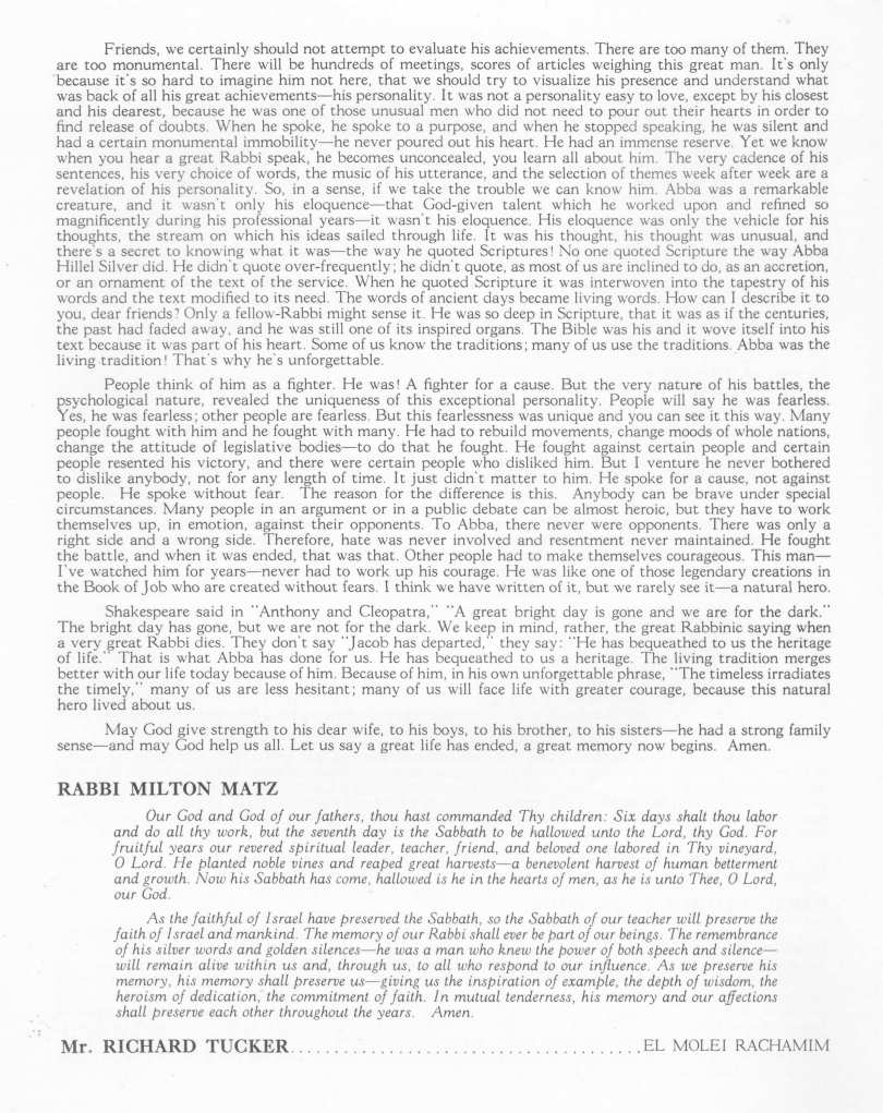 oldest, closest friend in the rabbinate, he and Silver would