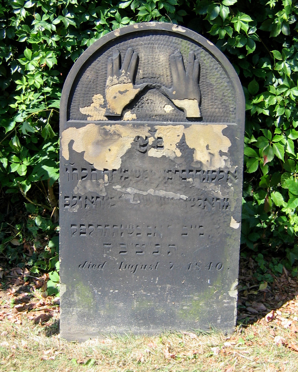 his 1840 headstone are hands raised in the priestly
