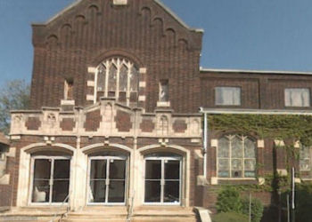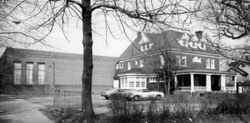 | The building at 14274 Superior Road, south of Mayfield Road, had been a sanitarium before it was bought in 1928. The large brick building in the rear was built in 1947 to add a sanctuary and auditorium. It still stands today. Photo source: Cleveland Memory Project at CSU. |