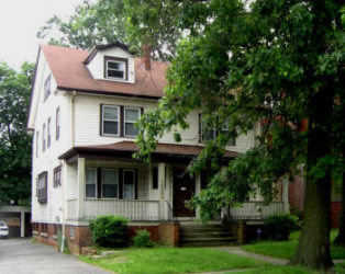 Rabbi and Mrs. Porath and their youngest children lived in the left half of this duplex home, across the street from the shul. Current photo by A. Berger |