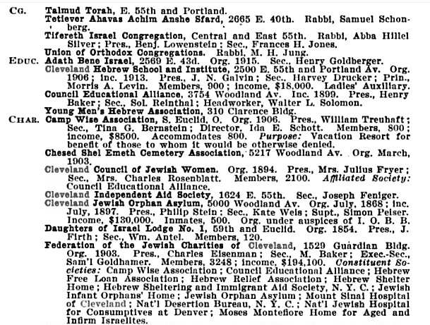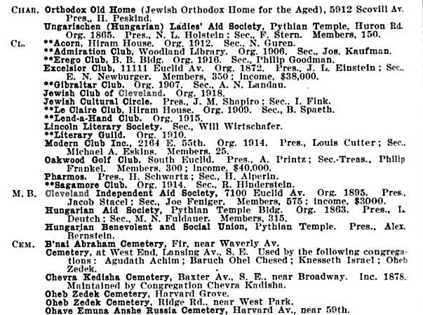 Information is alphabetical within category COngregations EDUCation CHarities CLubs MB = Mutual Benefit CM = Cemeteries