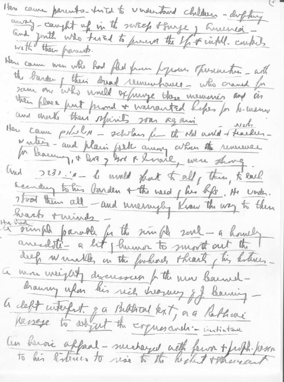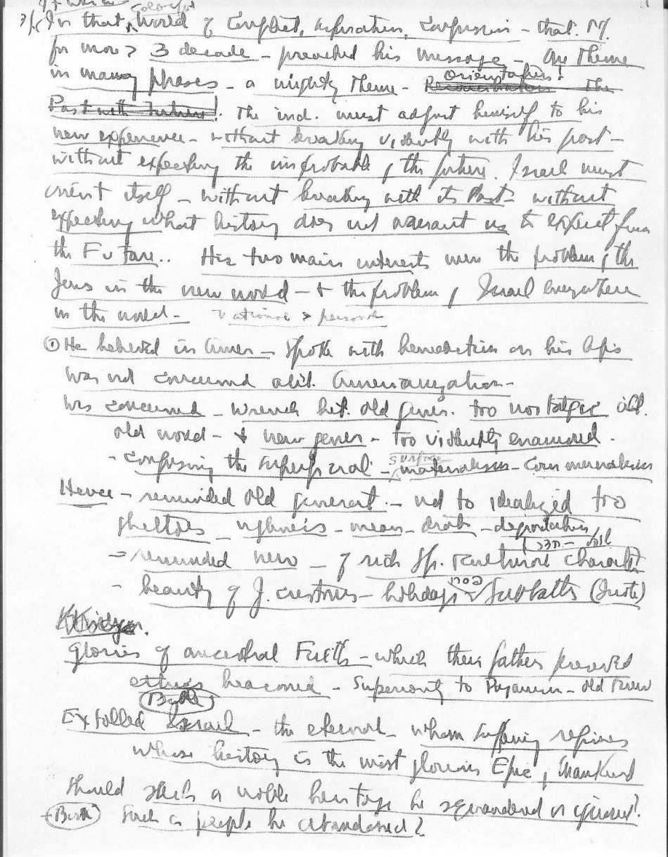 On Thursday evening April 15, 1943 Rabbi Abba Hillel Silver spoke at the memorial service for Rev, Zvi Hirsch Masliansky. We show below images of the five pages of handwritten notes, made on the back of Commodore Hotel stationery, he made in preparation. Courtesy Western Reserve Historical Society. To see a restoration of most of the eulogy, click here. |
