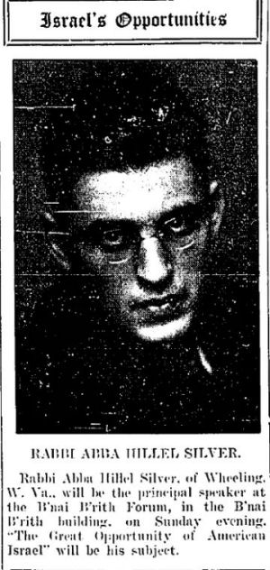 The Friday February 23, 1917 edition of Cleveland's weekly Jewish Independent displayed a picture of Abba Hillel Silver for the first time, announcing his talk at the B'nai Brith Forum that Sunday evening.