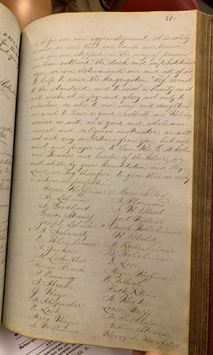 congregation meeting on Thursday evening, June 21, 1866 include the text of the petition, the names of the 34 petitioners and the motion to